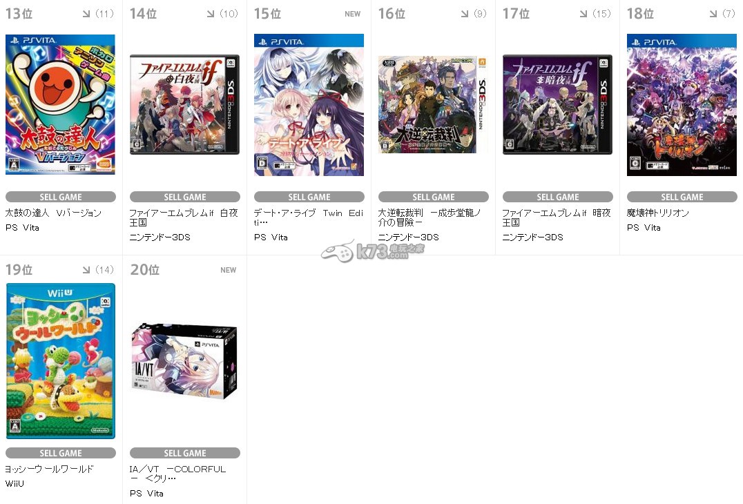《IA/VT -COLORFUL》的销量相比就弱了不少,不过作为一款原创音游,本作的表现同样不同,33pt占据销量榜的第七名。其它几款psv平台的新作均表现还算不错,均进入了销量榜的前二十名。