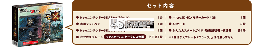 这五款均为new 3DS(非LL),均为日版机。除了“超级马里奥30周年版”和“怪物猎人X”是黑色主机外,其他三款都是白色主机,再配一套new 3DS替换壳发售(需自行换壳)。这些替换壳也有单独发售版。