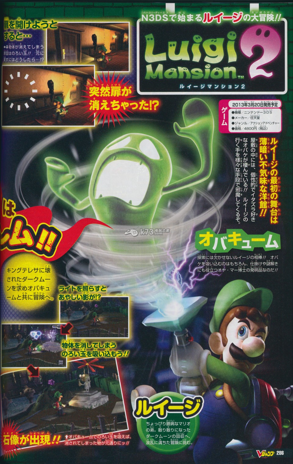 本周的Vjump杂志图上公开了即将于2013年3月20日发售的3ds动作游戏《路易鬼屋2 暗月》的全新杂志图,杂志图对游戏进行了简单的介绍,并介绍了本作的多人联机游戏。