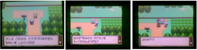 正式开始,进入游戏,发现开始的剧情还是和DP一样,主角在看电视,不过电视的内容倒是有所不同了……也没什么重要的消息可以54。 下楼后与母亲大人一番谈话,马上出门时又被教育一番OTZ。出门吧,阵子、、镇子上的NPC们都可以无视,来到左上方的对手家,又和对手碰个正着……囧。然后进屋上楼吧(外面的空地上都时雪,踩上去的声音很好玩的说> <~,这也是与DP不同的一处吧。与对对手经过了一阵子无聊的谈话之后,出门,北上出镇,马上又看到了对手,唠叨了一会后。博士出现了,(这次不必去湖边)聊了一会,副主角带这皮箱来了……,打开箱子。选择喜欢的PM吧~(我选个以前没怎么用过的乌龟倒是)。