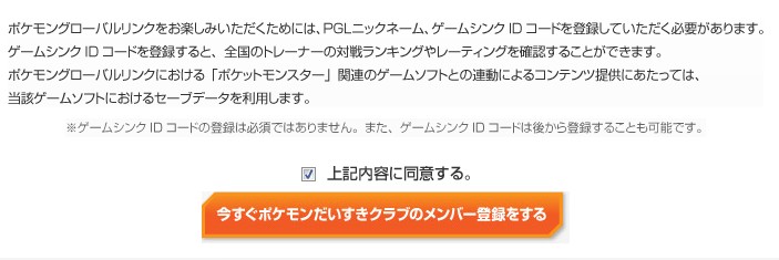 点击“新规メンバー登录”之后进入新界面,直接拉到最下面,勾选“上记内容に同意する”并点击“今すぐポケモンだいすきクラブのメンバー登录をする”选项进入下一步。如图: