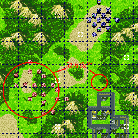 攻略要点: 本话初期敌人和我军的位置非常接近,注意敌人的ドッゴーラ,此机体实力是很强的,应当优先照顾。在击破6机以后,敌援军从左上,左下和右下方出现,起先的敌人全部撤退。而剑人也作为援军加入本方。在敌军剩下10台的时候,マーグ带领敌援军从右上方出现,当敌机总数小于10或者クロッペン被击破时,敌人就会全部撤退。而当マーグ被击破时,与他随行的援军就会撤退。此话中的クロッペン依然要打两次,而第二次他会在HP20%以下时撤退。 |