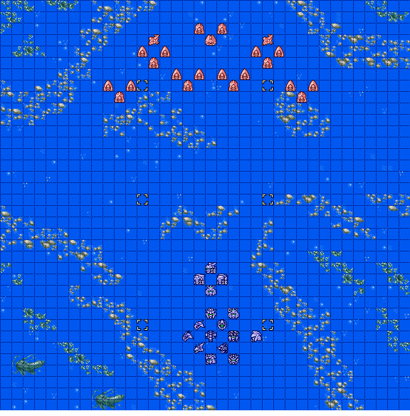| 攻略要点: 初始敌人分别配属在我方两侧且会向我方移动攻击,因此在原地摆好队型后一一将其击落即可。初始敌人减少到10机时,敌方增援出现在地图上方,全灭后进入第2部分。 |