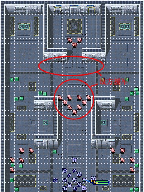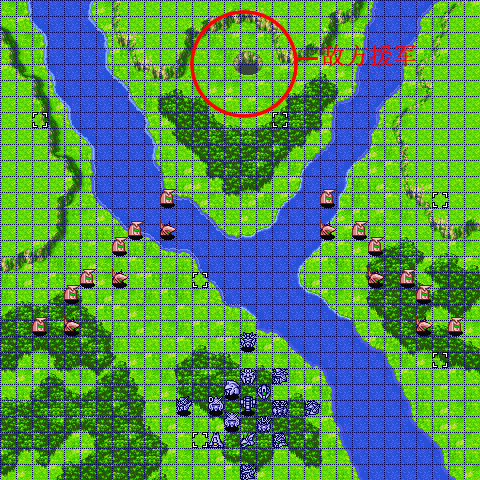 | 攻略要点: 后半战最初剑人和NPC离敌人很近,尽可能的保护NPC使其和自己母舰相邻,因为以剑人一个人的能力是挡不了众多敌军的。本队方面应该派出高移动力的人配合加速冲上去消灭追兵,好在敌兵的命中回避还不算很高……必要时候也应该对NPC使用信赖,而当NPC和母舰接触以后敌军就会退却。 |