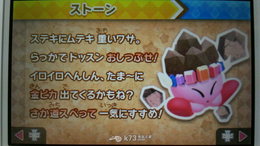 刚刚打通了DDD模式才91%,感叹一下玩本作一直在打酱油,岩石能力也不例外,虽然岩石能力用得不多但是细心的玩家不难发信岩石卡比的每一次势头变身都会出现不同的形态。这里就来看看岩石卡比一共有多少种邢台吧。