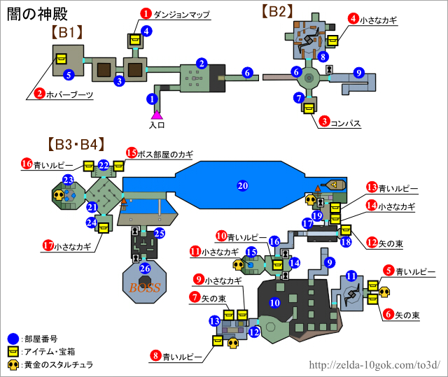 塞尔达传说时之笛3D中的迷宫相当的丰富,难度也非常之高,对于一些路痴的童鞋来说,一张迷宫地图是非常有必要的。另外,迷宫中也存在着大量的宝物,稀有道具哟!心之碎片和金色蜘蛛就是其中的一部分。下面本作中全部迷宫的图片攻略及相对应的道具物品。