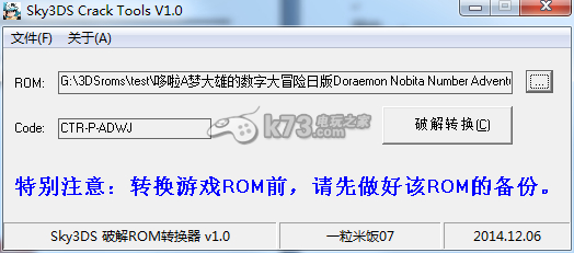 2,打开Skye3DScTool.exe(游戏ROM转换工具,会改写游戏ROM,所以转换前要做好备份)