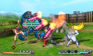 操纵在战斗画面中进场的五名角色不但可以使用超华丽的强力招式攻击,甚至此时还是最容易发生『跨界命中(クロスヒット)』的机会。