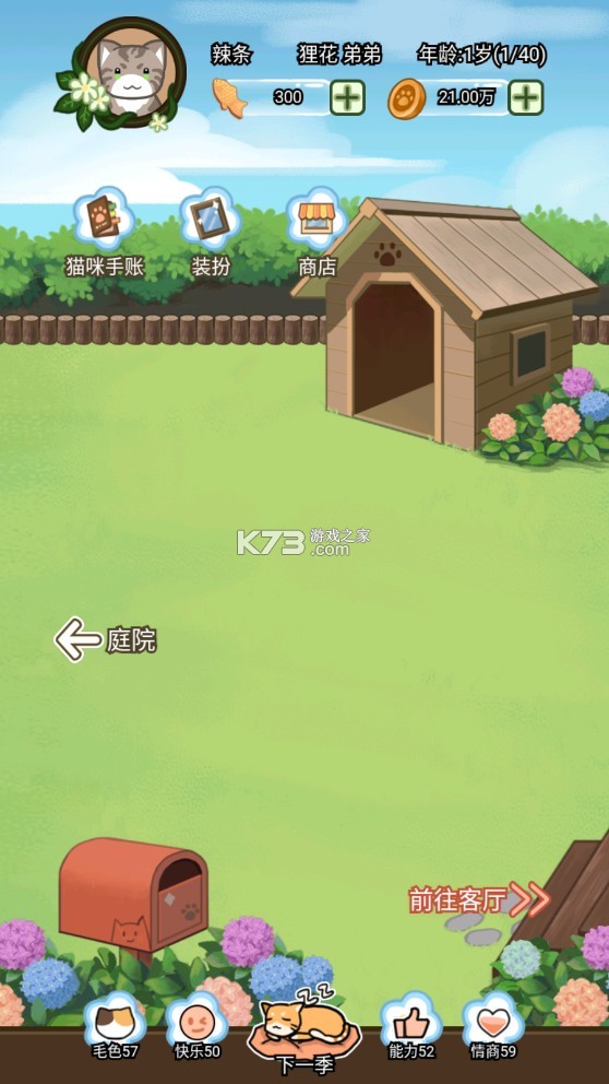 在线卖萌来获取好感度,丢皮球来让猫咪进行不断的奔跑增加快乐因素。
