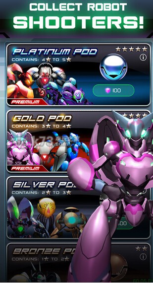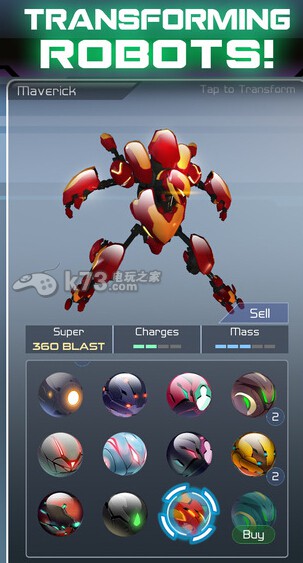 免费与朋友实时对战。使用您的变形机甲将你的对手或弹珠射离战场。与你的朋友们相互发信息和一起战斗。收集机甲套组赢得奖品。