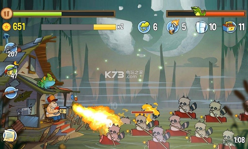 卫你的家园!你的沼泽小屋正遭到大批动物的疯狂袭击。
