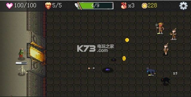 这是一款像素风的塔防游戏,玩家需要控制主角小法师在地牢中不断痛击来犯的小怪,将他们一波一波的打退消灭。