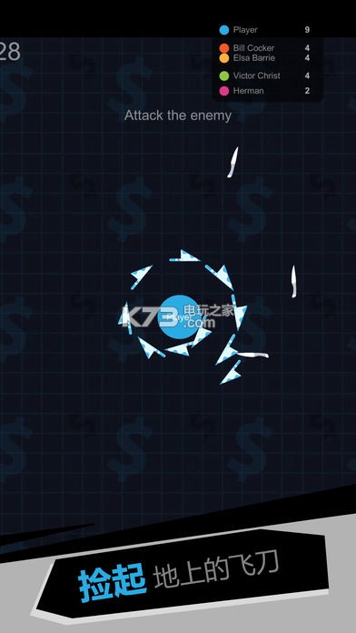 一款创新玩法的.io类游戏,通过对一大堆飞刀的熟练操控来进行混战,独创的龟缩防御机制(俗称王八状态)让你能轻松秀死对手。