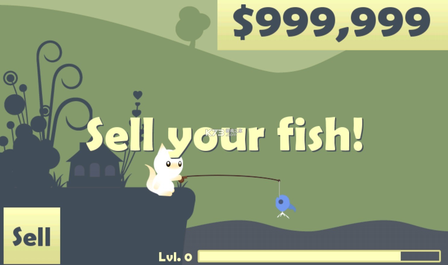 5、即可钓到鱼,点击左下角的【sell】,可以获得金币;