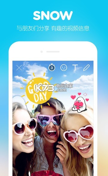 《snow拍照软件》是CampMobile Inc开发出来的一款拍照软件了,这款软件的特色就在于非常的好玩了,而且还能够人脸识别贴图。在和朋友聊天的过程中你还能够进行各种动态图的发出,非常的有意思呢!