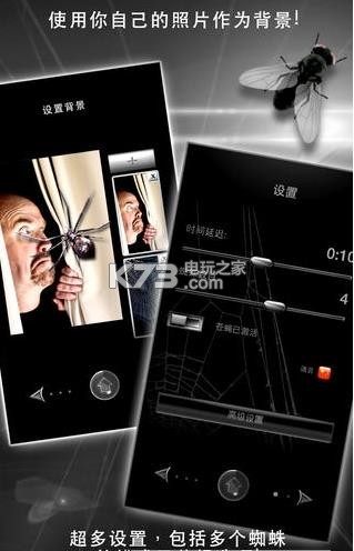 蜘蛛屏幕恶作剧简版安卓版它不但会爬! 还会攻击!使用逼真的3D蜘蛛和苍蝇来吓朋友!可定时后将手机给朋友玩,时间到蜘蛛会出现,朋友们被吓得跳起来!!!可先用一只嗡嗡叫的苍蝇吸引他们的注意力,然后让蜘蛛跳出来并发起攻击!解锁更多逼真蜘蛛品种!!