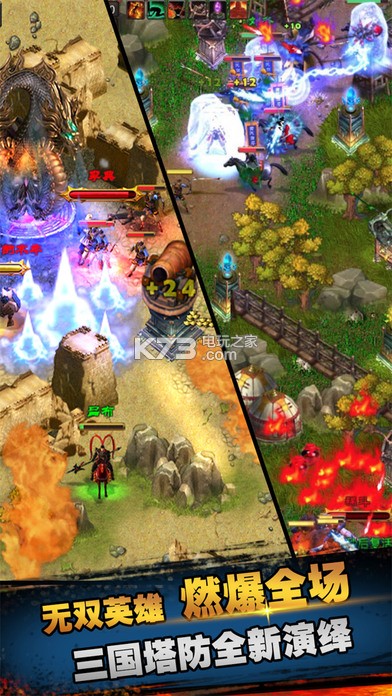 每位三国英雄在塔防战场上都有自己的独特定位和独有技能,您可以控制他们主动出击,施放强力技能,与防御塔配合,消灭大波敌军。
