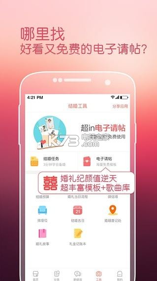 更实用:免费提供8大结婚工具,想邀请亲朋好友就用电子请帖,想知道备婚流程就用结婚任务,想了解黄道吉日就用结婚吉日,更多工具等你来体验。