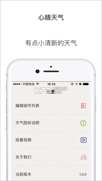 心晴天气是一款小清新的天气应用,除了提供天气预告外,你还可以将天气分享出去,可以修改天气页面的图片和配文。如果你喜欢我们的App,请推荐给你们的朋友.