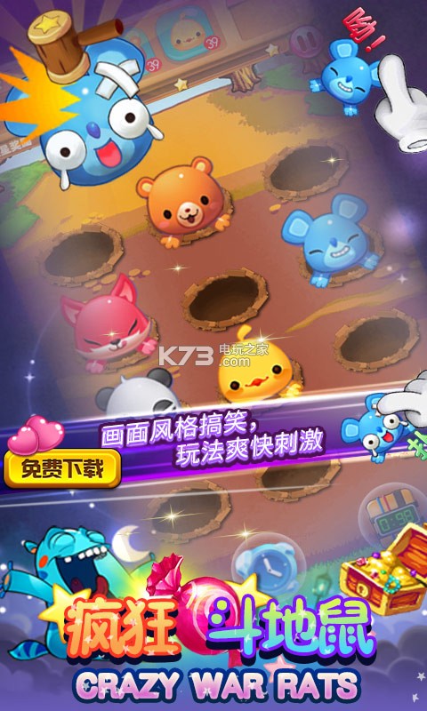 欢快,有趣,动感的打地鼠游戏。拥有暴风锤,轻轻一点,即可把地鼠打得满地找牙!