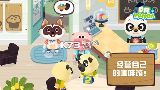 《熊猫博士咖啡馆》是一款风格可爱清新的模拟手游,作为Dr. Panda旗下游戏之一,有着十分耐玩的特性。熊猫博士咖啡馆完整版让大家可以直接试玩全部游戏类型,打造属于自己的咖啡馆。
