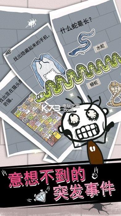 《史小坑的烦恼1考试》是一款有趣的休闲恶搞游戏,由坑爹游戏团队精心打造设定了各种各项有趣的难题供大家挑战,史小坑的烦恼1考试完整版需要开发自己的脑洞,这样才能顺利通关。