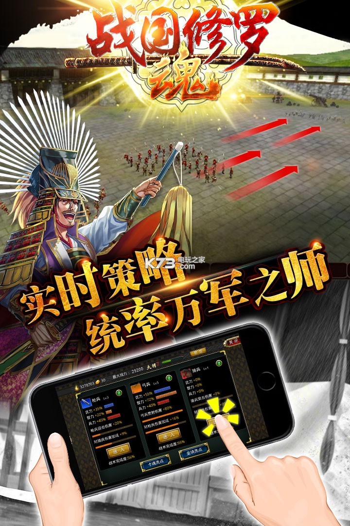 《战国修罗SOUL》是日本著名游戏商CREEK&RIVER推出的一款“战国”题材全3D即时战斗RPG手游。