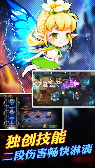 融合RPG玩法的Q版画风塔防手游。英雄即为塔战斗模式,