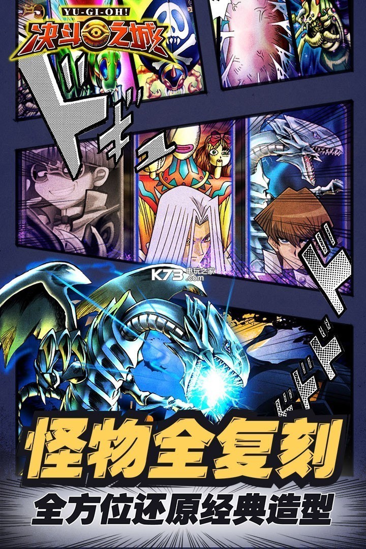 超人气动漫“游戏王”复刻改编,官方规则、原作角色、经典玩法,原汁原味为你呈现!青眼白龙、黑魔导、真红眼黑龙等上千种怪兽全方位还原,龙族套牌、昆虫卡组、死灵套牌等多种套牌任意打造,各个次元的决斗者齐聚决斗之城,同台竞技,在线对决,召唤怪兽,完成布局,使用魔法和陷阱绝地逆袭,让融合怪兽向对手发起致命一击。拼卡组,斗牌技,只有一个人能够获得最终的胜利!