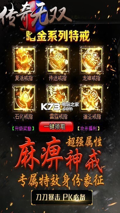 《传奇无双》是一款多人同时在线,超魔幻题材的经典传奇激斗手游。100%再现传奇经典玩法;丰富的PVE和PVP玩法,全自由化的PK,体验行会组织间相互大战的快感,充满热血与野性的对抗,更加真实的光影打斗效果。我们在秉承经典的同时,加入了一系列自主打造的新内容,嗜血PK、皇城争霸、酷炫坐骑、超级BOSS、新式副本等应有尽有;也让它们更具特色,能在传奇类游戏中脱颖而出,兄弟拿起手机,我们一起进入精彩传奇世界,杀出一个新传奇!