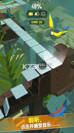 每个关卡都是在你眼前建造的迷宫。要想预测接下来会出现什么,以及对蜿蜒曲折的形势做出反应,你必须仔细听音乐。旋律的节奏是游戏内容的关键。