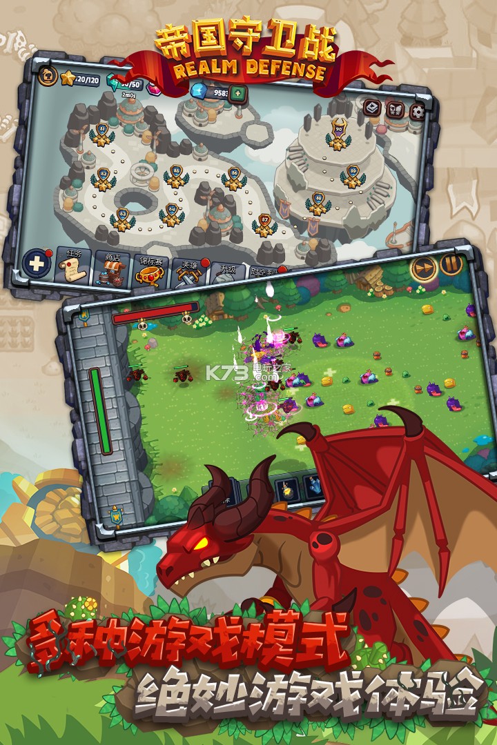 《帝国守卫战Realm Defense》是款优秀的策略塔防类游戏,玩家操作你的帝国军队人员,一起去阻止来自邪恶力量的攻击和破坏。本作的画面流畅,并且大量的敌人和世界地图也让游戏的挑战性更强,你可以升级不同的史诗英雄来帮助你守卫帝国的和平。