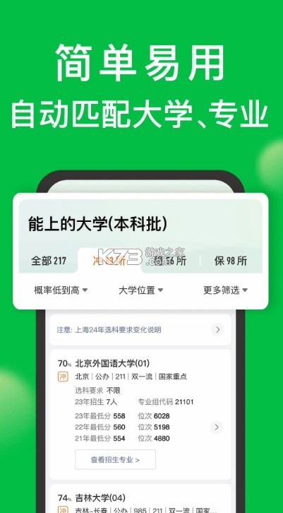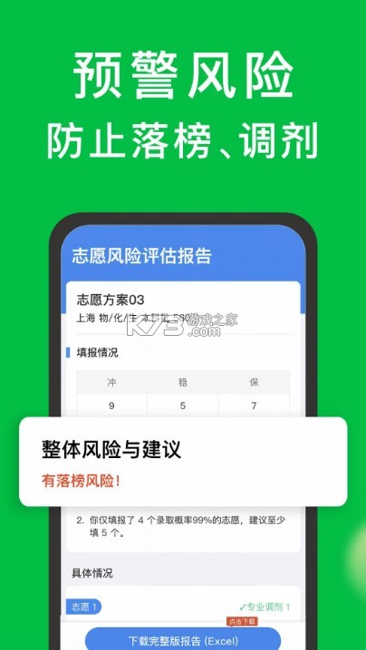 本应用已获得相关部门的全面认证与备案,确保信息的可靠性与安全性,让您在规划未来学业路径时信心满满。特有的预警机制,提前规避落榜与专业调剂的风险,为您的升学之路铺设平稳的基石。