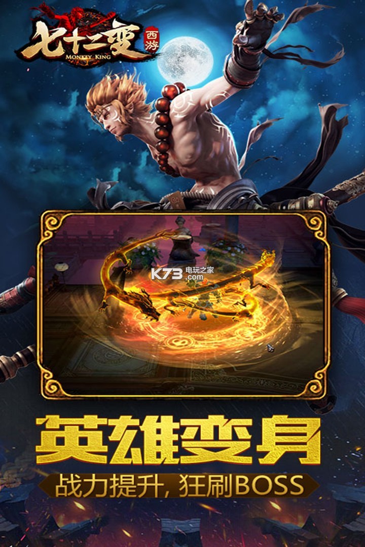 《西游七十二变》是一款暗黑西游风的精品H5-MMORPG网游。游戏采用多人同时在线即时战斗模式,独创七十二变、封神榜、轮回试炼、天地大逃杀、天宫争霸赛等PVE、PVP系统玩法