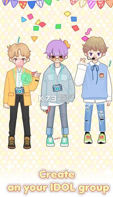 《粉彩偶像我的男孩》这是一款休闲装扮类手机游戏,游戏画风比较韩式,玩家可以为男角色穿戴各种帅气或可爱的衣服,为你的爱豆设计卡通角色,快来下载游戏吧。