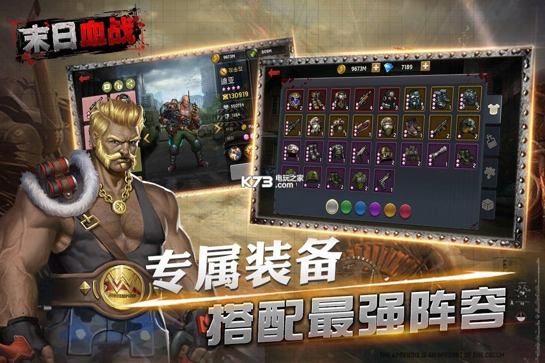 全新放置养成类手游《末日血战》,写实风格、轻松养成,让玩家体验其乐无穷乐趣,自由搭配阵容、爬上末世顶端、收集稀有和打造专属装备,搭配出属于自己的最强阵容。在这里,你可以愉快的养成英雄,无论是等级、装备、套装、神器、宝石,应有经验;还可以形成自然交互,好友、家族、世界聊天都是你了解最新资源,获得帮助的好地方;加入公会,争夺资源激情的公会,另有家族战、资源争夺战、公会boss,挑战可以赢得大量奖励;在这里,你还能与全球玩家巅峰竞技,无论是竞技场、关卡排名还是公会排名,都能感受到竞技的乐趣!