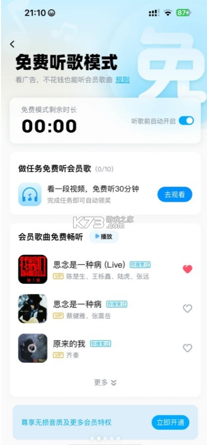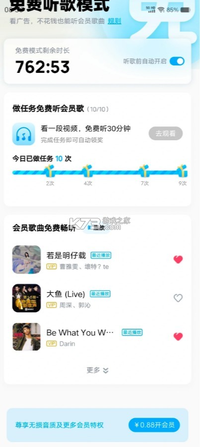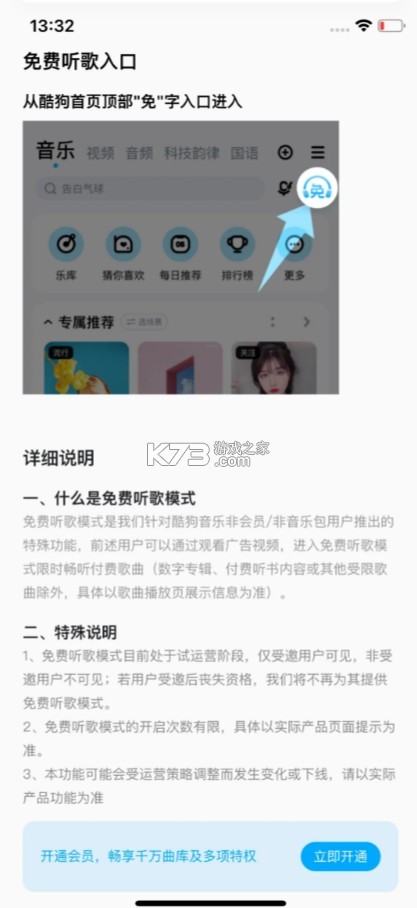 2、免费听歌模式的开启次数有限,具体以实际产品页面提示为准。
