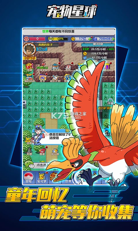 并高度还原宝可梦战斗,专属大招天赋、多样丰富的冒险玩法!专为小精灵玩家打造的全新《宠物星球》,快来捕捉属于你的小精灵,成为最强训练师吧!