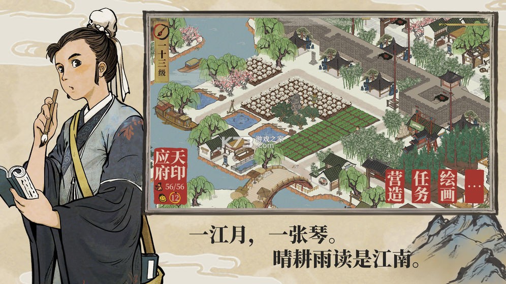 2、以及帮助唐伯虎建设日渐衰落的桃花村。在桃花村「唐伯虎」处,完成他的需求,即可在村内建造房屋建筑。在村内「教书先生」处,可以研究建造技术,解锁更多可建造的房屋类型。