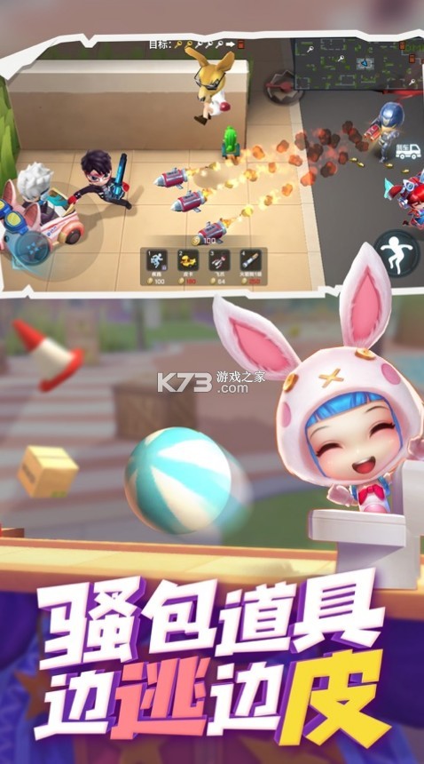 ②火箭筒追捕开车碰到逃生大部分都会直接开枪,第一发高速远射程很难躲,碰到火箭筒追捕开车看到自己立马一个阻挡箱即可挡住,跳高、变兔子、自走球也可以躲但都比阻挡箱慢一点。