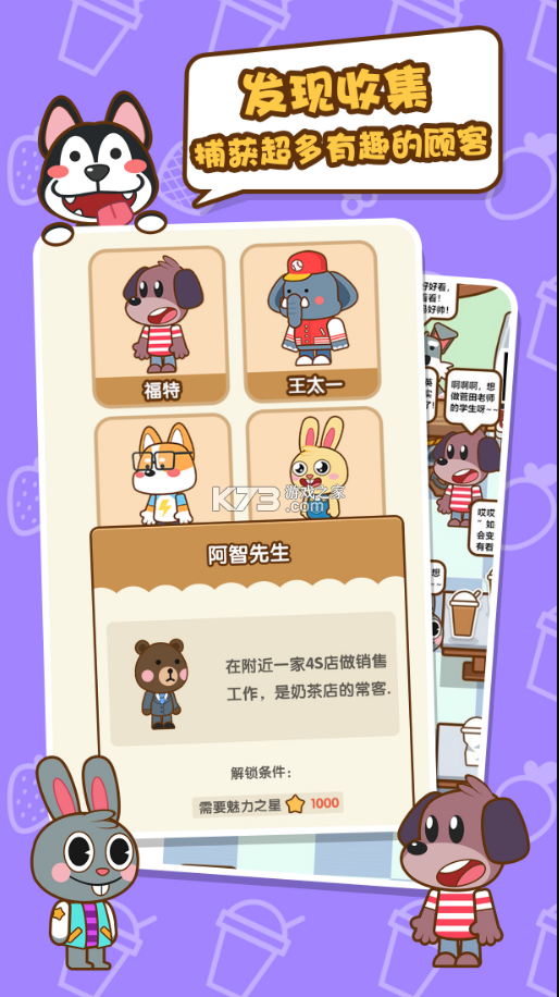 渐渐的,你需要研发新的奶茶来满足各种各样的顾客,你可以自己种植果树研发调制奶茶。和商贩们讨价还价。也会有更多神秘客人等待你来发现。