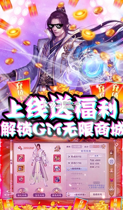上线即送至尊GM4、千万金币、88888礼金免费领取,开局平台送极品灵狐时装、特惠材料礼包等壕礼!每日签到送超10000元充值卡,每日活跃无限送充值,升级白嫖VIP经验卡尊享GM特权商城