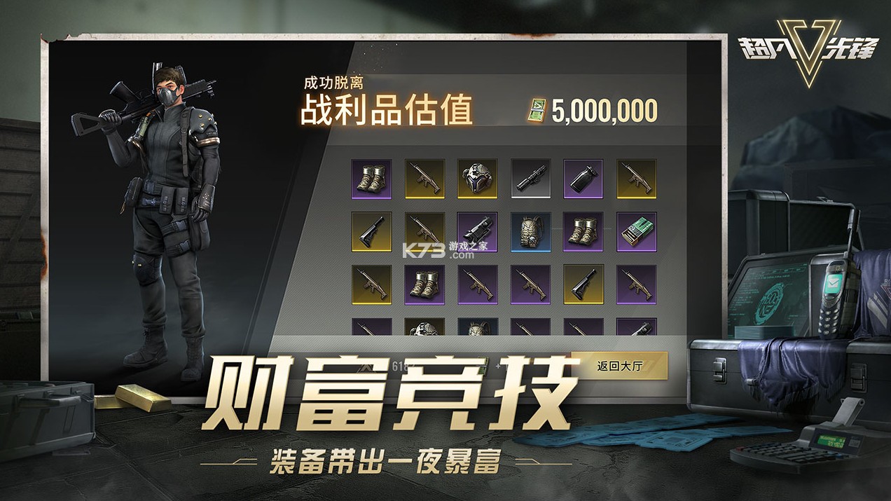 所谓的“夺金”,究竟是什么?在《超凡先锋》中,你可以通过在对局中带出战利品,或者在自由交易的市场中赚取差价,获取财富。每一局的物资皆可带出,你可以选择正面对抗极限夺金,也可以拾取地图物资低调发育。请注意,只有撤离成功,才能真正享受到财富积累的快乐。