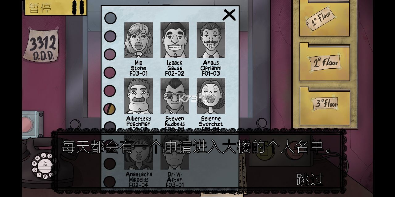 玩家将扮演门卫,负责审查请求进入居民楼的人员。通过观察、判断,决定是否允许他们进入。这看似简单的工作实际上需要高度的警觉和细致入微的观察。