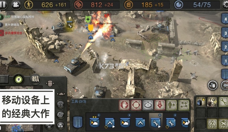 《英雄连(Company of Heroes)》手游是一款以二战为背景的即时战略手机游戏,为玩家带来了极富真实感的二战场景。游戏中,玩家将带领不同势力的军队在战场上进行激烈的交战,通过控制部队的行进和进攻来主导战局。