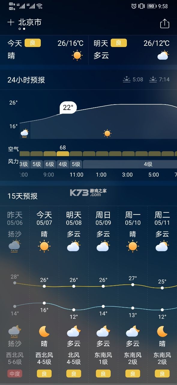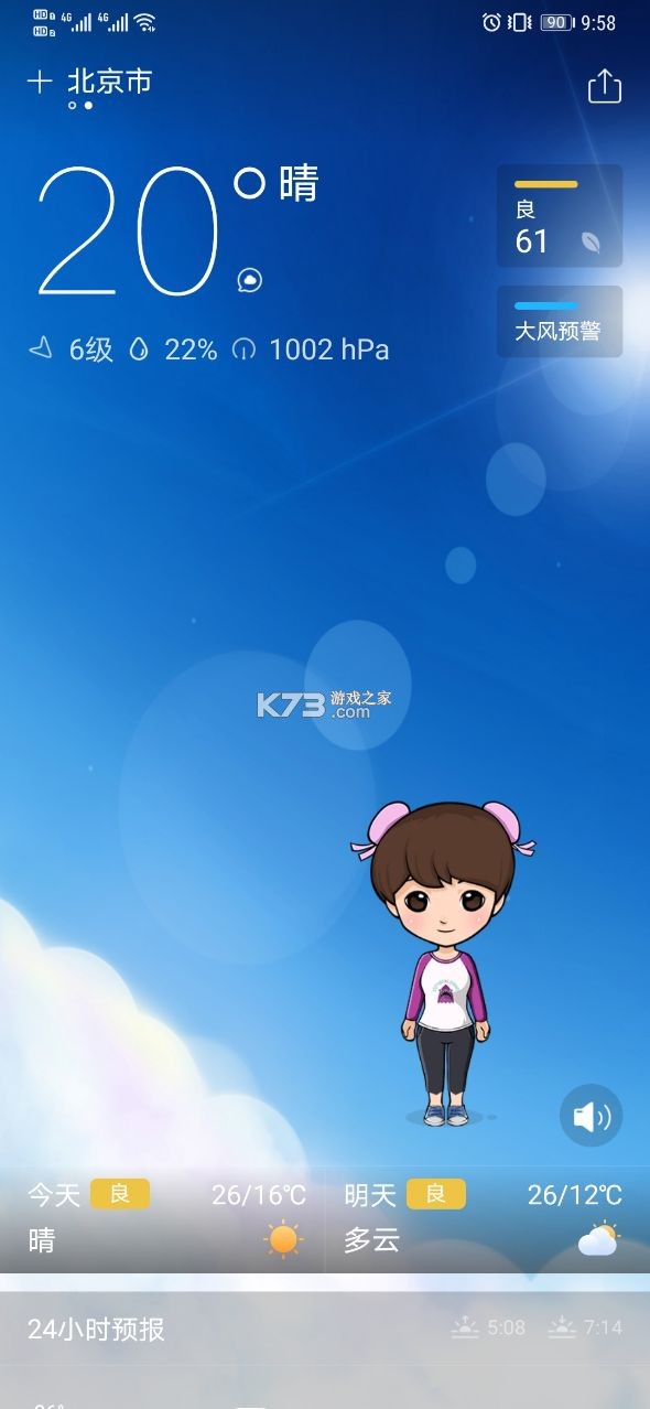 3、24小时天气预报,当日逐小时天气趋势随心查阅。