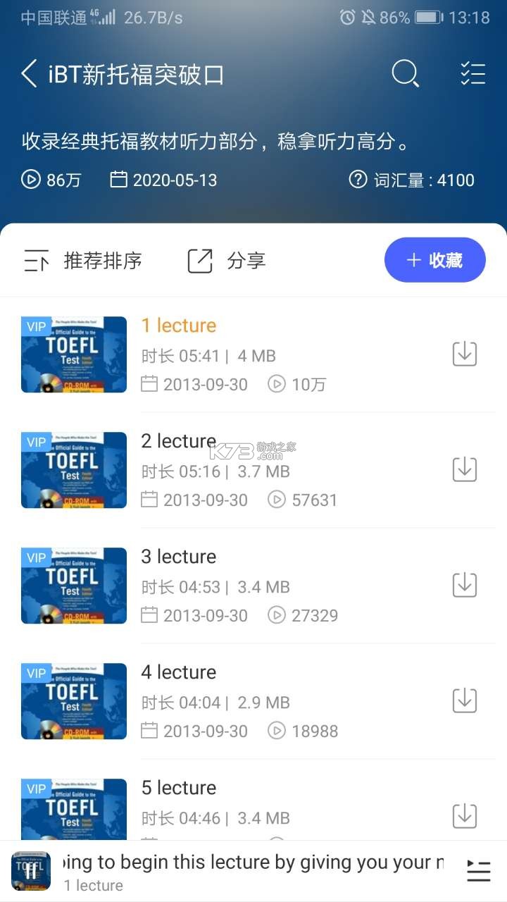 拥有每天更新的海量听力库,并独家提供智能语音高亮跟随功能