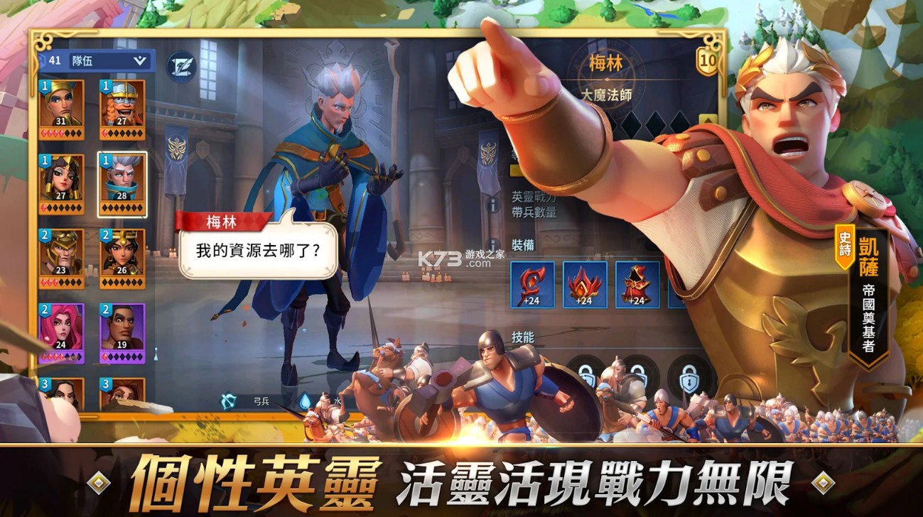 在《无尽城战》中,领主们将与来自不同国家文明的知名历史人物并肩作战,他们不再只是枯燥无味的历史人物,他们拥有量身打造的专属台词及出场动画,用声音为角色注入灵魂,用人物动作将展现出更加活灵活现的一面,就像是你我生活周遭的朋友一样的亲切有趣。