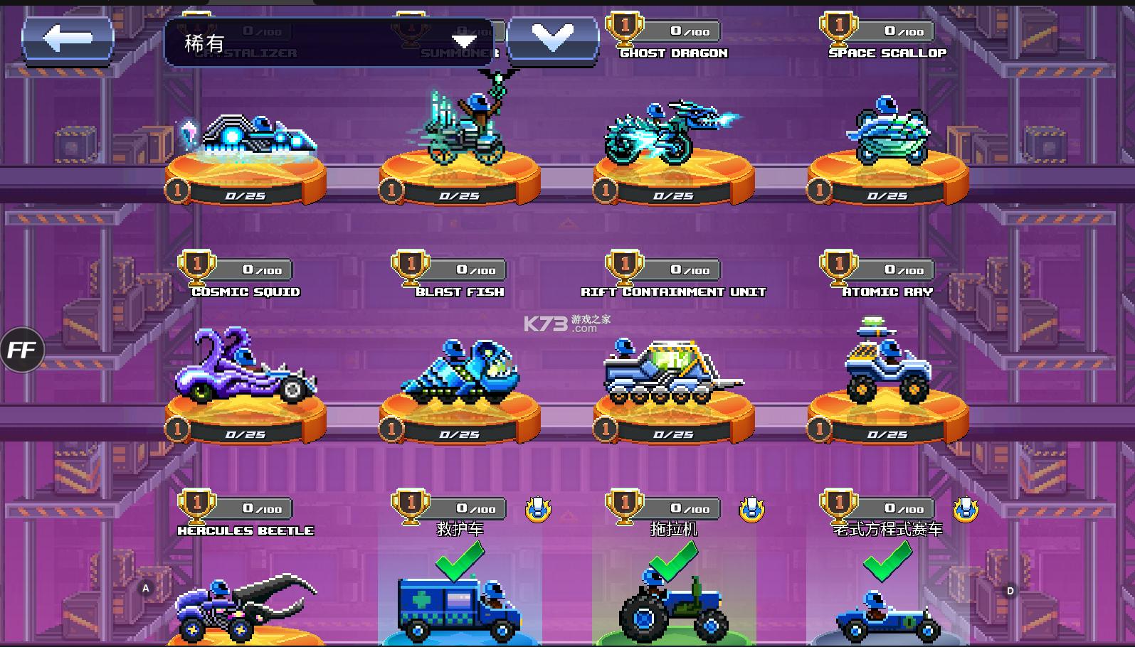 一款很解压的赛车驾驶小游戏,像素的整体风格能够带给玩家很舒适的游戏体验,破解版本为大家带来了所有的车辆,解锁了所有的地图,玩法多样,欢迎玩家上线体验,快去玩玩看吧!