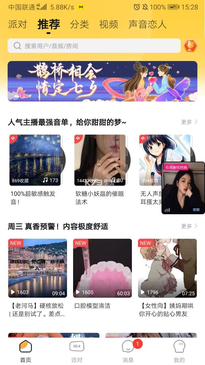 有知性治愈的御姐音、酥软萌萌的萌妹音,还有低沉沙哑、温柔亲切的男声,在线闲聊倾听烦恼、语音聊天哄睡。
